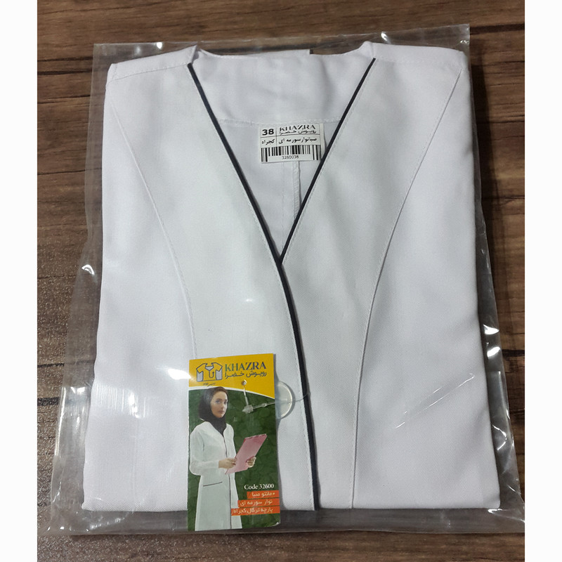 روپوش پزشکی زنانه خضرا (مدل صبا نوار سورمه ای کد 32600) در شرکت تبیان طب دیبا رازی طراحی و تولید شده است . پارچه این محصول کجراه میباشد . از ویژگی های این محصول عدم ایجاد حساسیت و عدم تعریق میباشد. پارچه کجراه از پارچه ترگال و تترون ضخیم تر می باشد و پوشش بهتری دارد . با توجه به تراکم مناسب پارچه کجراه ، این روپوش را هم روی مانتو و هم بدون مانتو میتوان استفاده کرد .برای انتخاب سایز مناسب به جدول راهنمای سایز که در تصاویر روپوش قرار داده شده مراجعه فرمایید.