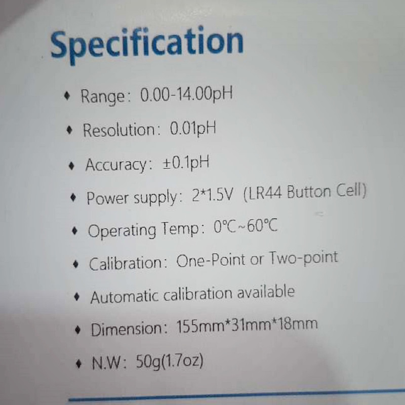 سایر توضیحات : دستگاه پی اچ متر دیجیتال و پرتابل برای اندازه گیری پی اچ مایعات نشانگر اسیدی و قلیایی بودن آب مناسب آزمایشگاه ها، بیمارستانها، لابراتوآرها، آکواریوم و .... منبع تغذیه باطری دکمه ای (ساعت)
