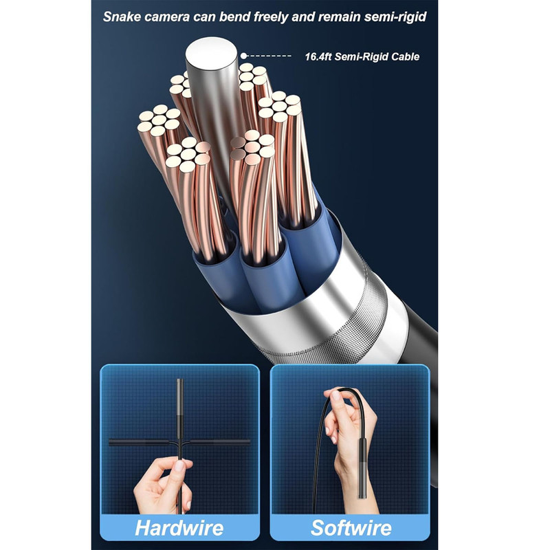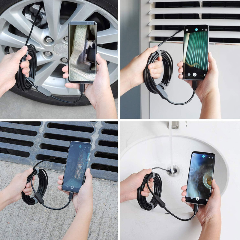 دوربین آندوسکوپی مدل ضدآب10Meters New با کابل 5 متر سخت انعطاف پذیر فنری با کانکتور میکرو USB و Type-C و USB کامپیوتر شما با این نمونه می توانید به تلفن های همراه و یا تبلت ها متصل شده و از آن در موارد متعددی استفاده نمایید. با نصب نرم افزار در دستگاه تلفن همراه و یا تبلت اندروییدی خود و یا نصب نرم افزار ویژه بر روی کامپیوتر خود و اتصال دوربین شلنگی می توانید با وضوح بالا تصاویر را دریافت کنید. این وسیله کاربردهای بسیاری دارد ازجمله کاربردهای آن جستجو و نجات،مشاهده داخل خط لوله، بازرسی موتور، نظارت تصویری، بازرسی لوله فاضلاب ،بازرسی دیوار، و غیره