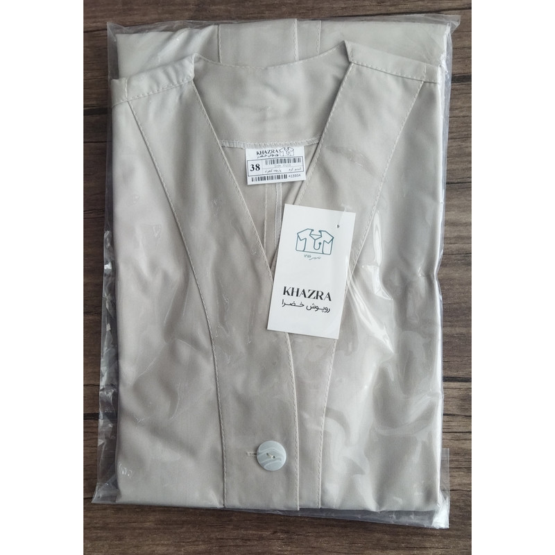روپوش کار زنانه خضرا مدل شبنم رنگ کرم (کد 35203 ) در شرکت تبیان طب دیبا رازی طراحی و تولید شده است . پارچه این محصول کجراه است . از ویژگی های این محصول عدم ایجاد حساسیت و عدم تعریق میباشد. پارچه کجراه کمی ضخیمتر از پارچه تترون و ترگال است . برای انتخاب سایز مناسب ، یک روپوش قدیمی را از پشت اندازه گیری کنید و با جدول راهنمای سایز که در تصاویر روپوش قرار داده شده مقایسه کنید .دقت کنید حتما براساس جدول ، سایز خودتان را انتخاب کنید و سایز روپوش ، بامدل یا برند دیگر را معیار انتخاب سایز قرار ندهید . کالایی که دریافت می کنید دارای مارک های دوخته شده (خضرا khazra ) می باشد و بر روی هر روپوش ، کد کالا درج شده است .