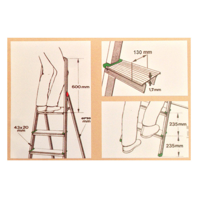 ایستاده , پله چند ضلعی , تاشو , قابلیت استفادهی دو طرفه , قفل ارتفاع