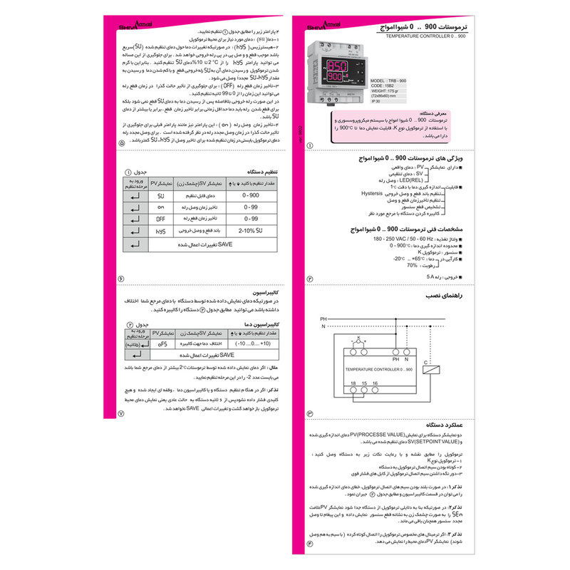 سایر توضیحات : داراي نمايشگرهاي : PV:دماي واقعي و SV: دماي تنظيمي و (LED(REL: وصل رله مي باشد.