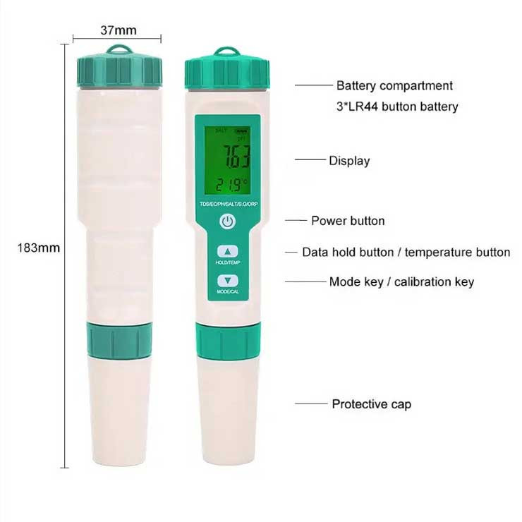 PH متر مدل NETPIL C-600 دیجیتال عملکرد بالایی دارد، مقدار اندازه گیری شده پایدار است و نتیجه محاسبه دقیق است. شکل قلم مانند دستگاه ، کار تستر را راحت تر و بسیار کاربردی تر می کند. این تستر دیجیتالی کیفیت آب ، ضدآب ip67 است، کیت تست سختی آب می تواند در مخزن ماهی استفاده شود و استفاده از آن آسان است. ابزارهای اندازه گیری ضد آب با کیفیت بالا می توانند به شما کمک کنند تا کار خود را به خوبی انجام دهید. این تستر را می توان به طور گسترده در تست آب خانگی، نمک غذا، مخازن ماهی، آکواریوم، زمین کشاورزی، استخر، آبزی پروری و آزمایشگاه و غیره استفاده کرد.PH متر مدل NETPIL C-600 جدیدترین تست کننده کیفیت آب چند منظوره است با 7 عملکرد و یک محصول برای چندین بار مصرف که می تواند PH / TDS / EC / ORP / وزن ویژه / دما آب دریا را اندازه گیری کند. محدوده اندازه گیری آن بزرگ و گسترده است و می تواند شوری آب شیرین و نمک دریا را اندازه گیری کند.