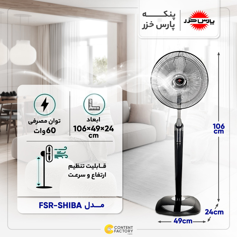پنکهی شيبا fsr «پارس خزر» مدل «FSR-SHIBA» یکی از بهترین مدل پنکه پارس خزر موجود در بازار است. این دستگاه با بدنهی مشکیرنگش، زیبایی خاصی به فضای مورداستفاده میدهد. این دستگاه در منازل، ادارهها، شرکتها، مدارس، باشگاهها، مطبها و... قابلاستفاده است. مشخصات پنکه پارس خزر مدل شیبا این پنکه با پرههای پلاستیکیاش، صدای کمی ایجاد میکند. ارتفاع پنکه قابلتنظیم است تا برای موارد خاص هم استفاده شود. این مدل در 6 سرعت میتواند فعالیت داشته باشد که در سه مدل پرتاب باد میکند. نمایشگر پنکهی شیبا، شاخصهی آن است که تمام عملکرد و فعالیتهای دستگاه را نشان میدهد. رنگیبودن این نمایشگر به زیبایی و خوانایی آن کمک میکند. کنترل همراه این محصول هم امکان تنظیم دستگاه را از فاصلهی دور فراهم میکند. توسط آن میتوان دستگاه را خاموش و روشن کرد، تایمر را تنظیم و نوع پرتاب باد را مشخص کرد. البته روی بدنه هم دکمههای کنترلی تعبیه شدهاند. حفاظ پرهها مانع از بروز خطر میشود و در صورت برخورد اتفاقی با پنکه، خطری پیش نمیآید. پایهی دستگاه طوری طراحی شده تا پنکه حتی در بیشترین ارتفاعش ثابت بماند و احتمال افتادنش در برخوردهای احتمالی افراد با آن کم شود. سیم بلند این دستگاه، امکان جابهجایی آن را در زمان روشنبودن فراهم میکند؛ البته رعایت احتیاط لازم است. وجود فیوز حرارتی در موتور مانع از آسیبدیدن موتور میشود. این پنکه محصول خاص پارس خزر است که در بازار لوازمخانگی طرفداران زیادی دارد. پارس خزر سالها با تولید و عرضهی محصولات باکیفیت و اقتصادی، معروف و محبوب شده است. شما با مراجعه به سایت ديجي كالا میتوانید از قيمت پنكه شيبا fsr،پنكه سقفي،پنکه پارس خزر مدل آدو،پنکه پارس خزر مدل رعنا،قیمت برد پنکه پارس خزر مدل شیبا اطلاع کسب کرده و اقدام به خرید بفرمایید.
