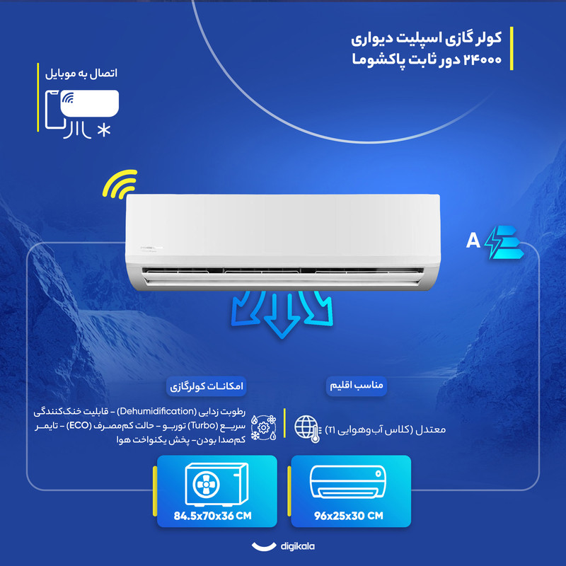 کولر گازی اسپلیت دیواری 24000 دور ثابت پاکشوما مدل MPB_24CHR1
