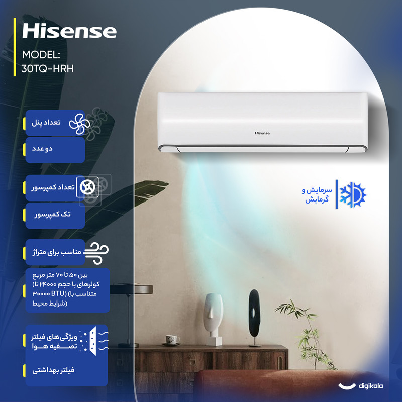 کولر گازی اسپلیت دیواری 30000 دور ثابت هایسنس مدل HRH-30TQ