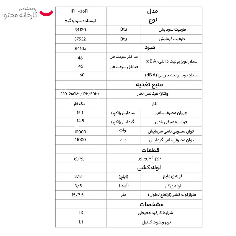 توضیحات ریموت کنترل : نمایشگر دیجیتال روی ریموت , کنترل کامل تنظیمات دما و فن , تنظیم تایمر از طریق ریموت , تنظیم جهت پرتاب باد از راه دور , قابلیت تنظیم حالت توربو از ریموت , طراحی ارگونومیک و سبک