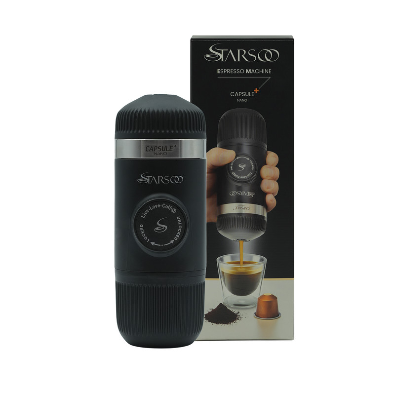 بدون نیاز به برق یا باتری – تنها با فشار دست قهوه تهیه میکنید.