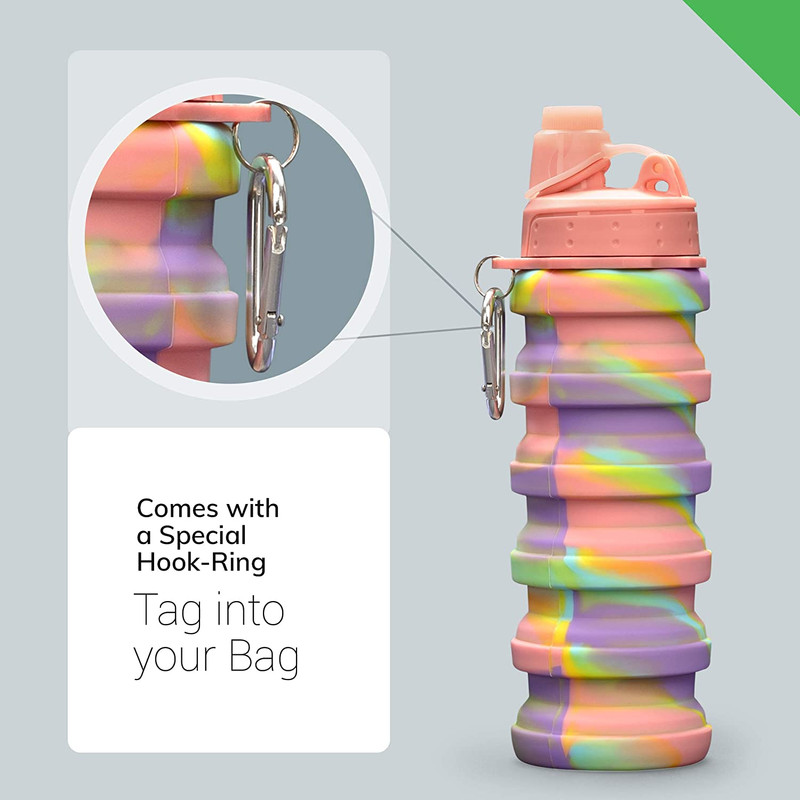 قمقمه اکاردئونی ساده ، بسیار سبک ، بدون موادشیمیایی، بدون مزه و بو ، قابل شستشو در ماشین ظرفشویی و بسیار انعطاف پذیر است