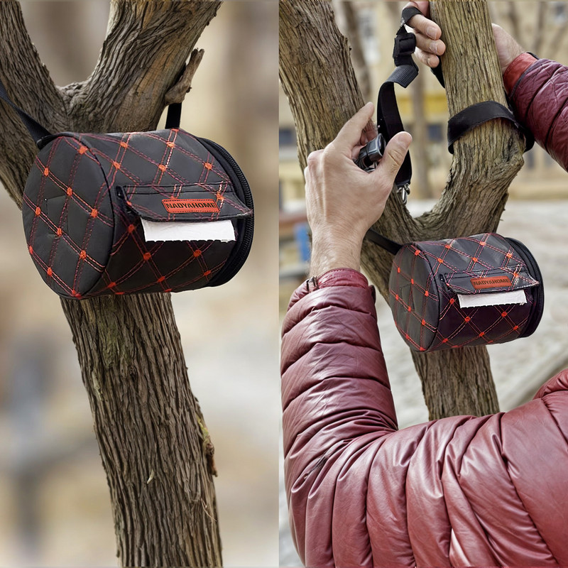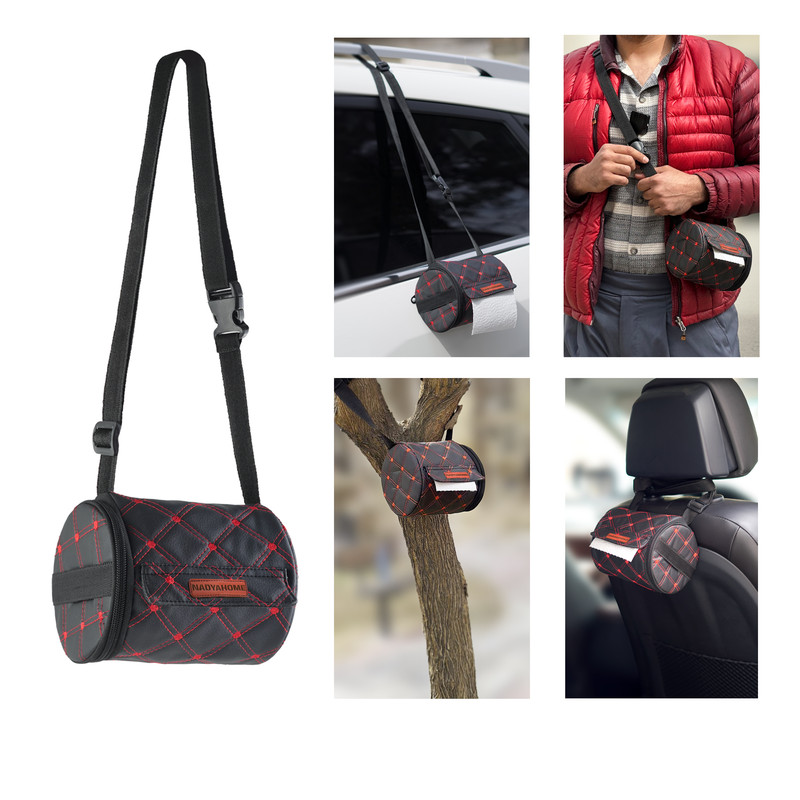 کیف سفری دستمال کاغذی نادیاهوم یک کیف با طراحی ویژه برای قرار دادن دستمال کاغذی رولی میباشد. بدنه کیف دو لایه و از جنس چزم صنعتی و یک لایه داخلی بوده و یک استوانه پارچه ای هم برای قرار گرفتن در وسط دستمال برای استفاده ساده تر طرراحی شده است. در کناره کیف یک بند دستی برای حمل و یا متصل نموده قرار گرفته و یک بند دوشی نیز برای آن تعبیه شده است. این مدل در بابر رطوبت مقاوم می باشد و شما می توانید در خانه، سفر، کمپینگ و داخل خودرو استفاده نمایید. بند های آن به شما اجازه می دهد تا هم به راحتی بتوانید آن را حمل و جابجا نمایید و هم بند های را برای اتصال و آویزان کردن در فضاهای مختلف استفاده نمایید. ابعاد این کیف جا دستمالی 13*14 سانتی متر می باشد. استفاده از این کیف از آلوده و کثیف شدن دستمال رولی شما هم پیشگیری می کند.