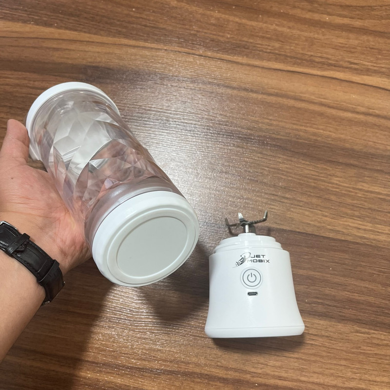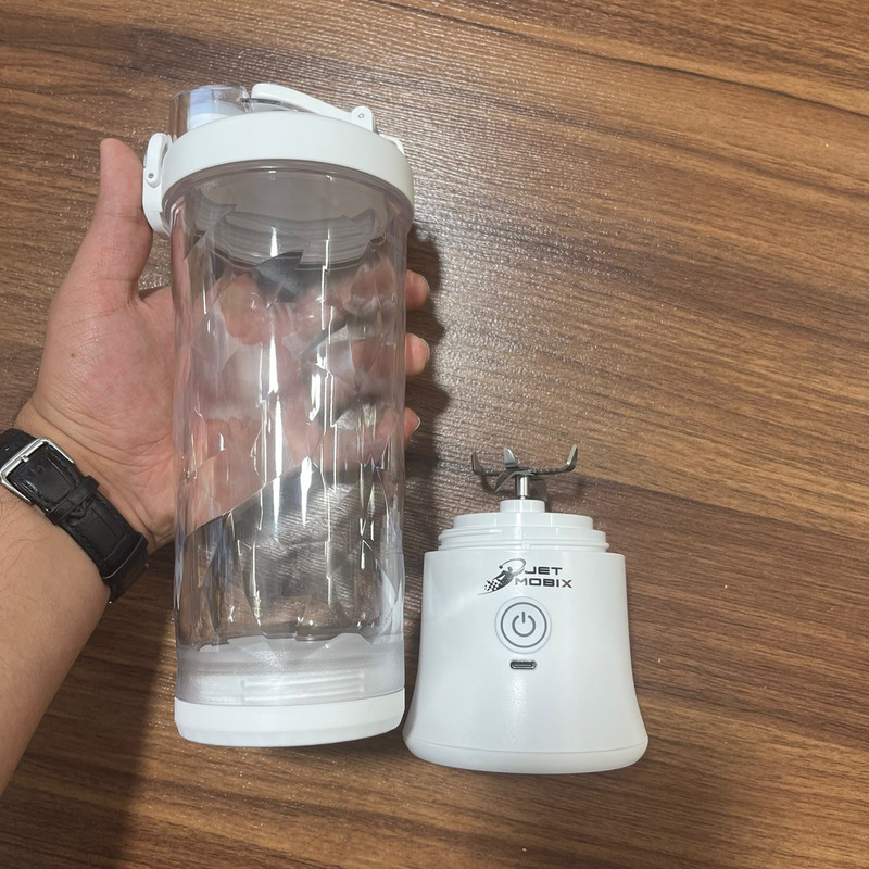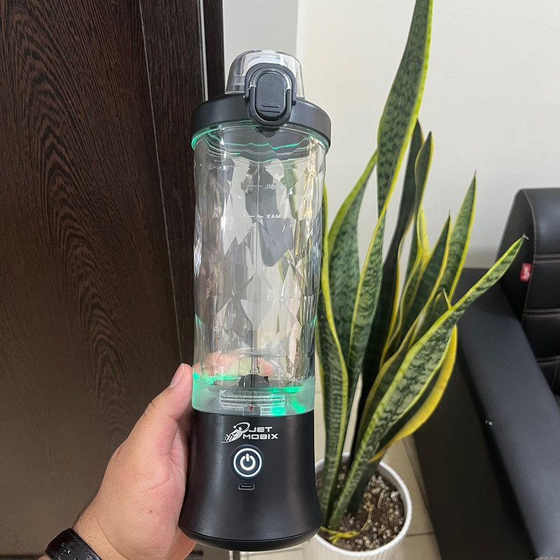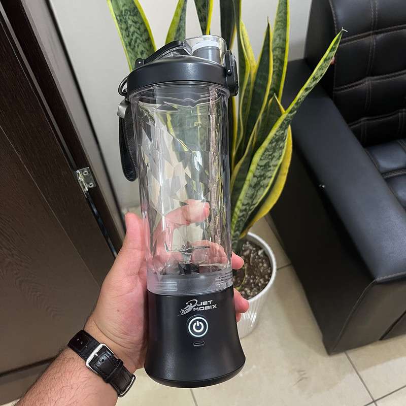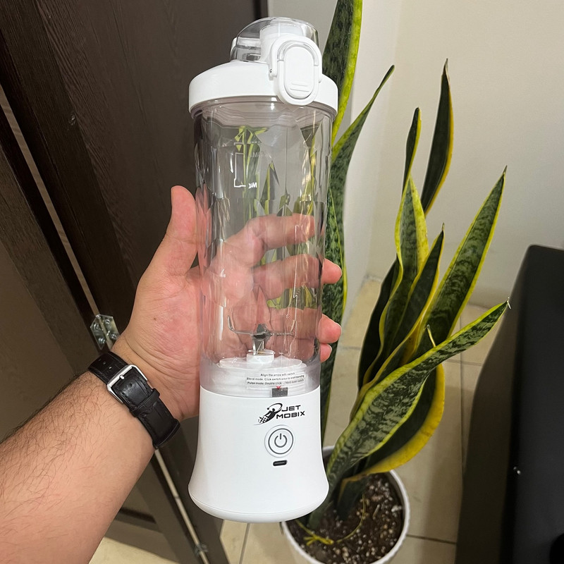 شیکر و مخلوط کن شارژی جت موبیکس مدل A9 به روز ترین محصول کمپانی جت موبیکس است که با تکنولوژی پیشرفته و طراحی بدنه کریستالی خود ، یک مخلوط کن حرفه ای پر قدرت قابل حمل و ضد آب را در اختیار شما قرار میدهد تا بتوانید در زمان ، نوشینی دلخواه خود را درست کرد و از آن لذت ببرید . تیغه های به کار رفته در این مخلوط کن با کیفیت ، از جنس استیل 304 با طراحی 6 پره سه جهته با قابلیت یخ شکن می باشد که به راحتی تمام ، فراتر از انتظار یک مخلوط کن شارژی هر آنچه که داخل این مخصول کن قرار دهید را خرد میکند از قالب یخ و میوه یخ زده گرفته تا دانه های سخت مثل جوز هندی و زنجبیل و سایر خوراکی های سخت پوست ، این مخلوط کن به شما هرگز در خرد کردن ، نه نمیگوید. در ساخت این محصول از موتور دریل شارژی استفاده شده که سرعت چرخش آن تا 18000 دور بر دقیقه بالا می رود و میتواند یک نوشیدنی یک دست و با بافتی نرم را در اختیار شما قرار دهد. در بسته بندی این شیکر حرفه ای ، پک نظافت و شستشو محصول و دستگیره چرمی نگهدارنده و کابل شارژ و درب تبدیل به ماگ و دفترچه راهنما نیز قرار دارد. این مخلوط کن حرفه ای توانایی ذخیره سازی 4000 میلی آمپر انرژی را دارد که با هر بار شارژ قابلیت استفاده بیش از 25 مرتبطه را به شما میدهد فقط دقت کنید که برای افزایش عمر دستگاه به هیچ عنوان نباید با شارژر فست شارژ محصول را شارژ کنید و میتوانید با آداپتور های معمولی موبایل (غیر فست شارژ) به راحتی محصول را شارژ کرده و سال ها از آن استفاده کنید .این شیکر شارژی حرفه ای 2 حالت روشن کردن دارد (1-دکمه را یکبار فشار دهید که این مود اصلی است و مخلوط کن به مدت 30 ثانیه روشن میشود 2-دوبار فشردن دکمه اصلی که این مود حالت پالس را فعال میکند و بعد از آن فقط همان زمانی که دکمه را فشار میدهد روشن میشود) این محصول برای شیک کردن انواع مکمل ورزشی و ساخت انواع اسموتی و نوشیدنی و شیک مناسب میباشد و همچنین در موقعیت های سفر و کمپینگ و حتی آشپز خانه میتوانید برای آماده سازی غذا از آن استفاده نمایید (مثل خرد کردن گوجه یا خرد کردن پیاز برای پختن کباب) . این محصول یک درب تبدیل به ماگ نیز دارد که میتوانید پس از آماده سازی نوشیدنی ظرف اصلی شیکر را به یک ماگ ورزشی کریستالی تبدیل کنید.