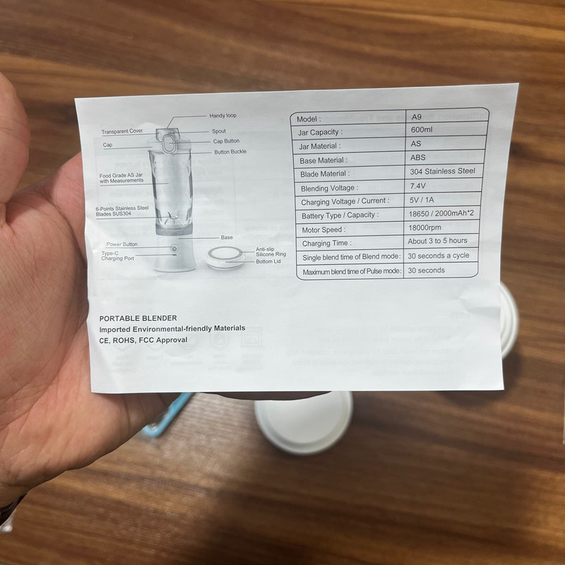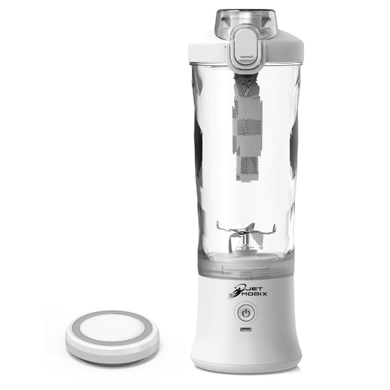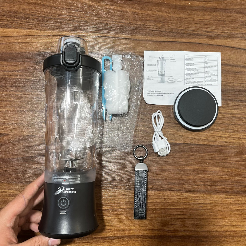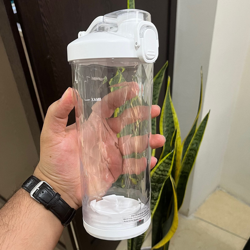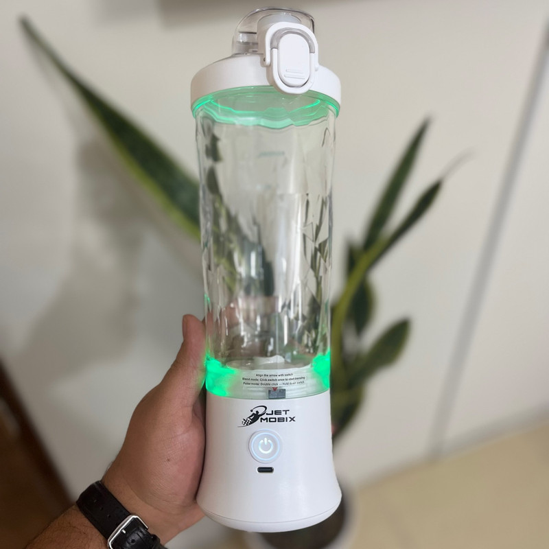 شیکر و مخلوط کن شارژی جت موبیکس مدل A9 به روز ترین محصول کمپانی جت موبیکس است که با تکنولوژی پیشرفته و طراحی بدنه کریستالی خود ، یک مخلوط کن حرفه ای پر قدرت قابل حمل و ضد آب را در اختیار شما قرار میدهد تا بتوانید در زمان ، نوشینی دلخواه خود را درست کرد و از آن لذت ببرید . تیغه های به کار رفته در این مخلوط کن با کیفیت ، از جنس استیل 304 با طراحی 6 پره سه جهته با قابلیت یخ شکن می باشد که به راحتی تمام ، فراتر از انتظار یک مخلوط کن شارژی هر آنچه که داخل این مخصول کن قرار دهید را خرد میکند از قالب یخ و میوه یخ زده گرفته تا دانه های سخت مثل جوز هندی و زنجبیل و سایر خوراکی های سخت پوست ، این مخلوط کن به شما هرگز در خرد کردن ، نه نمیگوید. در ساخت این محصول از موتور دریل شارژی استفاده شده که سرعت چرخش آن تا 18000 دور بر دقیقه بالا می رود و میتواند یک نوشیدنی یک دست و با بافتی نرم را در اختیار شما قرار دهد. در بسته بندی این شیکر حرفه ای ، پک نظافت و شستشو محصول و دستگیره چرمی نگهدارنده و کابل شارژ و درب تبدیل به ماگ و دفترچه راهنما نیز قرار دارد. این مخلوط کن حرفه ای توانایی ذخیره سازی 4000 میلی آمپر انرژی را دارد که با هر بار شارژ قابلیت استفاده بیش از 25 مرتبطه را به شما میدهد فقط دقت کنید که برای افزایش عمر دستگاه به هیچ عنوان نباید با شارژر فست شارژ محصول را شارژ کنید و میتوانید با آداپتور های معمولی موبایل (غیر فست شارژ) به راحتی محصول را شارژ کرده و سال ها از آن استفاده کنید .این شیکر شارژی حرفه ای 2 حالت روشن کردن دارد (1-دکمه را یکبار فشار دهید که این مود اصلی است و مخلوط کن به مدت 30 ثانیه روشن میشود 2-دوبار فشردن دکمه اصلی که این مود حالت پالس را فعال میکند و بعد از آن فقط همان زمانی که دکمه را فشار میدهد روشن میشود) این محصول برای شیک کردن انواع مکمل ورزشی و ساخت انواع اسموتی و نوشیدنی و شیک مناسب میباشد و همچنین در موقعیت های سفر و کمپینگ و حتی آشپز خانه میتوانید برای آماده سازی غذا از آن استفاده نمایید (مثل خرد کردن گوجه یا خرد کردن پیاز برای پختن کباب) . این محصول یک درب تبدیل به ماگ نیز دارد که میتوانید پس از آماده سازی نوشیدنی ظرف اصلی شیکر را به یک ماگ ورزشی کریستالی تبدیل کنید.
