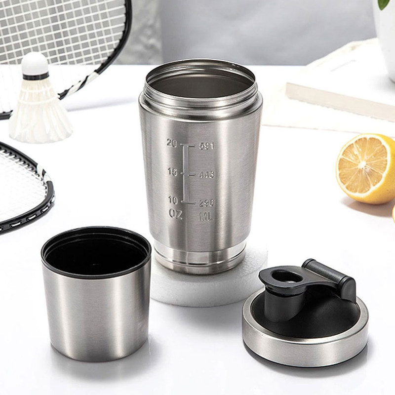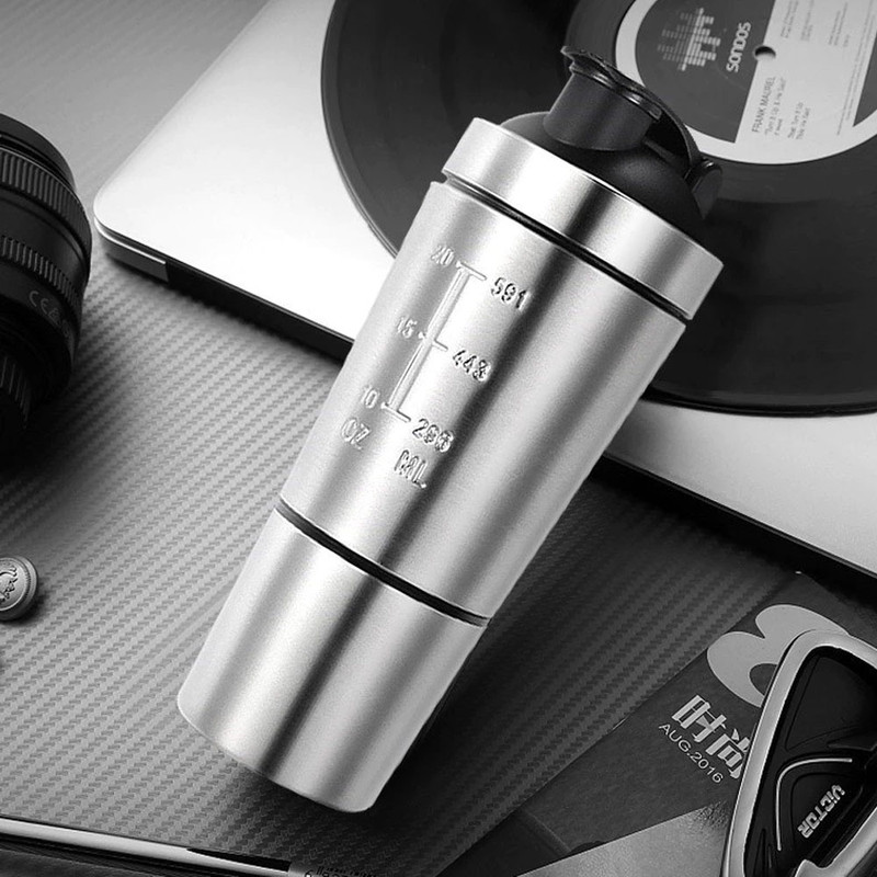 این محصول به گونهای طراحی شده که دارای یک عدد فنر در داخل شیکر بوده و این قطعه سبب میشود که اگر محلولی را درون آن میریزید به راحتی حل شود. این محصول دارای یک قسمت مجزا در بخش انتهایی بوده که به لطف آن میتوانید مکملهایتان را با خود به همراه داشته باشید. از طرف دیگر از این بخش میتوانید به عنوان لیوان نیز استفاده بکنید.