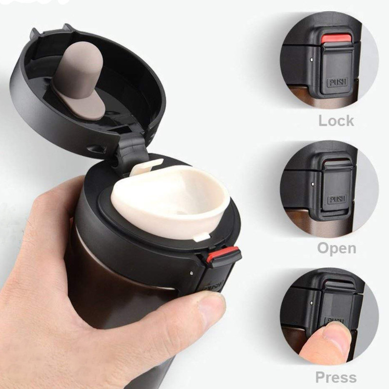 ماگ سفری از جنس استیل ضدزنگ ساخته شده است ، جنس درب این ماگ سفری پلاستیک و از نوع ضامندار دکمه ای میباشد