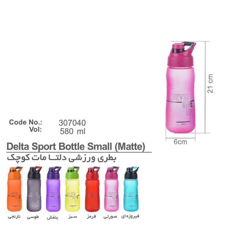بطری دلتا بزرگ مانیا از جنس PET ساخته شده و وزن بسیار کم این محصول یعنی تنها 130 گرم مرهون این ماده بکار رفته در ساخت محصول است. برای جلوگیری از بیماری، بطری مانیا فاقد BPA بوده و در انتها این محصول قابل بازیافت هم هست. با توجه به ابعاد بطری که 21× 6×6 سانتیمتر بوده گنجایشی معادل 580 میلی لیتر دارد. این گنجایش برای یک بطری یک نفره بسیار مناسب خواهد بود و حجم مناسبی از نوشیدنی را در خود نگهداری میکند. بطری دارای یک در پیچی بوده و خروجی نوشیدنی از آن به صورت اهرمی باز و بسته میشود. تأییدیه انجمن نانو برای بطری مانیا مدل دلتا ، نمایانگر آنتی باکتریال بودن آن است. همچنین این بطری به صورت دستی قابل شستشو است .