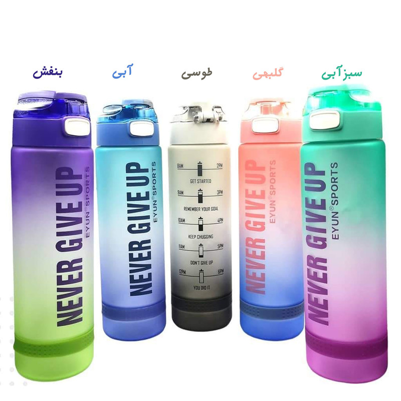 حجم یک لیتر دارای قفل فشاری رنگ چرمی نشانگر میزان آبخوری در زمانهای مختلف دهانه لوله ای گیره حمل بدون نشتی (دارای دو عدد واشر) عاری از BPA