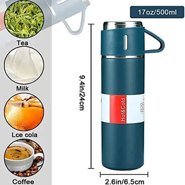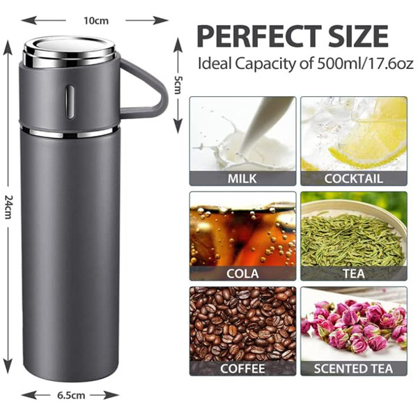 از ویژگی های این مدل علاوه بر بسته بندی شیک و طراحی جالب میتوان به موارد زیر نیز اشاره کرد: ست فلاسک نیم لیتری با کیفیت، سری با قابلیت استفاده به عنوان لیوان است. جنس بدنه پلاستیک فشرده ABS محفظه داخلی استیل ضد زنگ شامل 2 لیوان همراه (مجموعا 3 لیوان) قابلیت سرد و گرم نگه داشتن آب تا 12 ساعت دارای کیف (بگ) مقوایی بسیار مناسب برای هدیه دادن میباشد