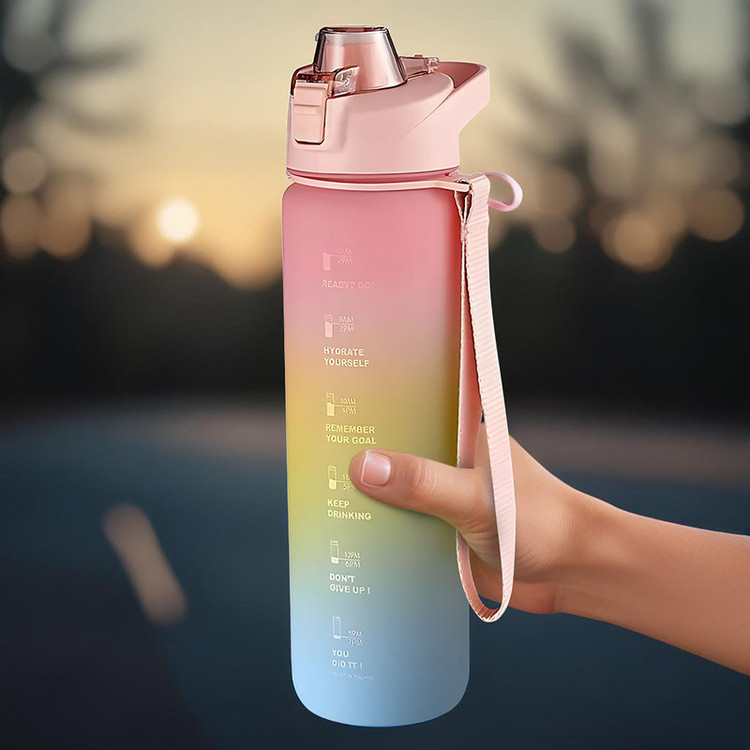 فاقد مواد مضر free BPA درب دکمهای، بدون نشتی دارای لبی آساننوش بدنه نشکن و مقاوم دارای بند پارچه ای و هولدر امکان قراردادن در فریزر مناسب باشگاه، کوهنوردی، پیادهروی و ...
