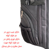 قابلیت تنظیم بند , جای عینک , جای قمقمه , محافظ لپ تاپ , پشتی پد دار , پد شانه