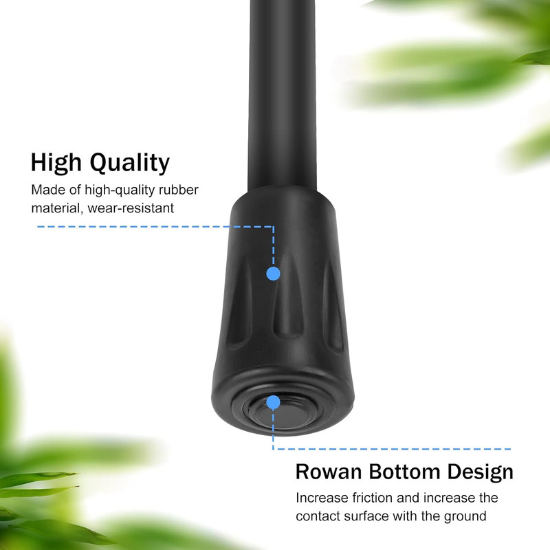 واشر فلزی موجود در درپوش مانع از زود پاره شدن درپوش عصای کوهنوردی می شود و عمر آن را چند برابر می کند. جنس درپوش عصا از پلاستیک بوده و به دلیل فشرده سازی زیاد و طرح استوانه مخروطی شکل خود حالت سفت بودن به خود گرفته است
