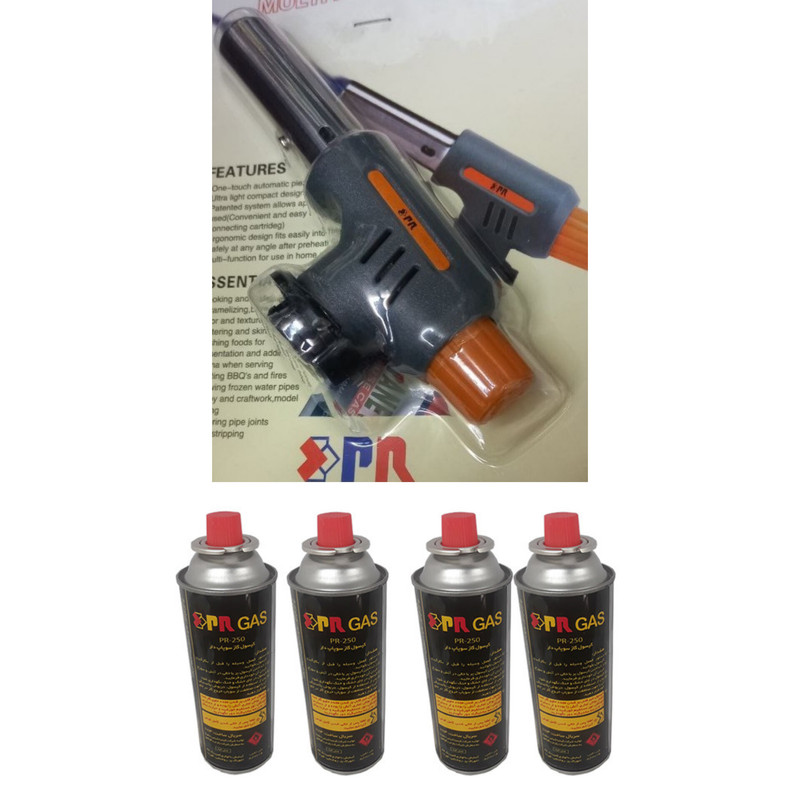 محتوی4 عدد کپسول گاز و سرپیک شعله افکن میباشد. بسیار کاربردی است. از روشن کردن ذغال تا لوله کشی های سبک و اضطراری.درضمن هم کپسول گاز 210 گرمی و هم سرپیک (تورچ) با مارک PR (پارس رگولاتور) عرضه میگردد.