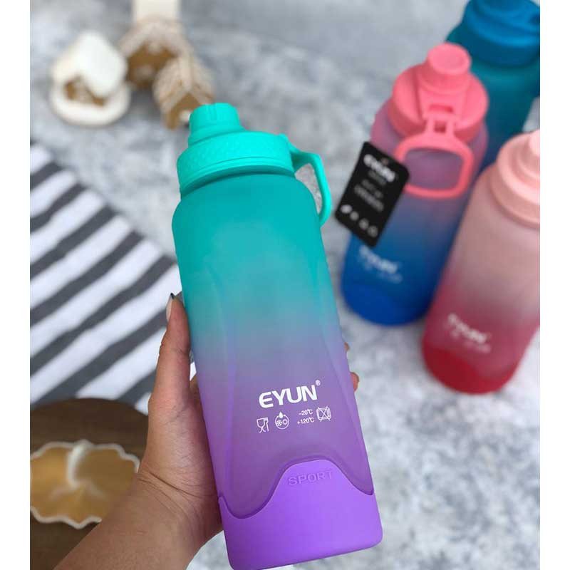 همچنین قمقمه ورزشی EYUN دارای یک بند دسته نسبتا بلند و با کیفیت از جنس پلاستیک فشرده است. که با استفاده از این دستگیره این قمقمه 1 لیتری بسیار آسان تر شده.