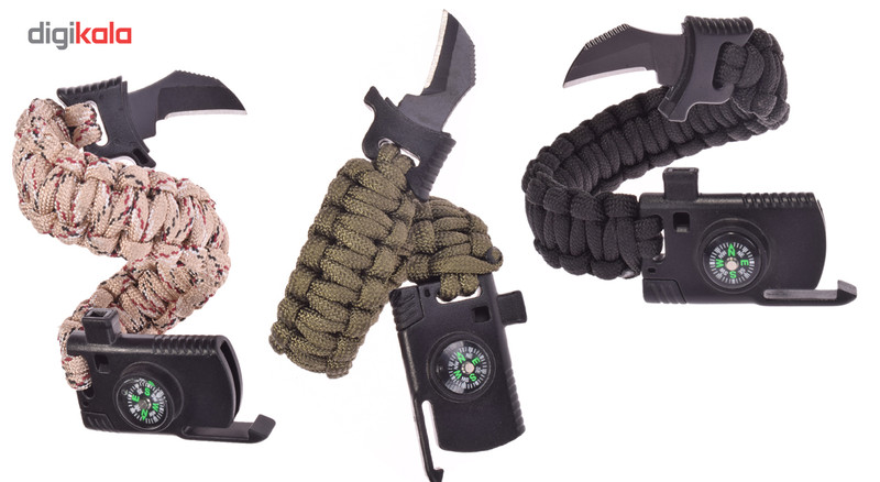 دارای سوت و چخماق مجهز به اره و چاقو مجهز به قطب نما
