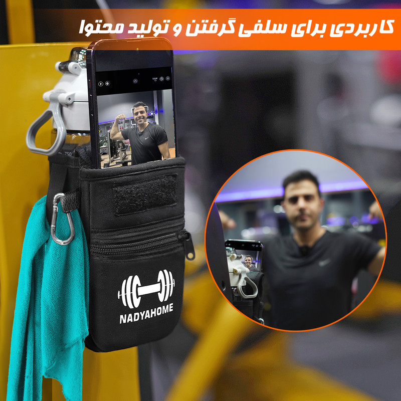 برای همه ورزشکاران یک کیف بینظیر تولید کرده ایم تا حین ورزش در باشگاه همه وسایل خود را به راحت ترین شکل ممکن در کنار خود داشته باشید. کیف مگنتیک باشگاه نادیاهوم، یک کیف آهنربایی بسیار با کیفیت است که در داخل آن می توانید بطری آب، گوشی موبایل، کارت ها،، هندزفری و کلید خود را قرار داده و آن را به سطوح فلزی متصل نمایید !!! یک کش هم روی این کیف تعبیه شده که می توانید حوله کوچک و یا عرق کیر همراهتنان را به آن متصل نمایید .این کیف درجه یک دارای آهنربا بوده و به شما اجازه می دهد تا به دستگاه فلزی متصل نموده و بدون خم شدن به وسایل خود دسترسی داشته باشید. روی کیف یک جیب مخصوص گوشی طراحی شده و یک جیب کوچکتر برای هندزفری یا کارت قرار گرفته است. یک کارابین کوچک هم برای اتصال کلید در نظر گرفته شده و کمربند آن هم به دور بطری آب شما بسته می گردد و تمام.