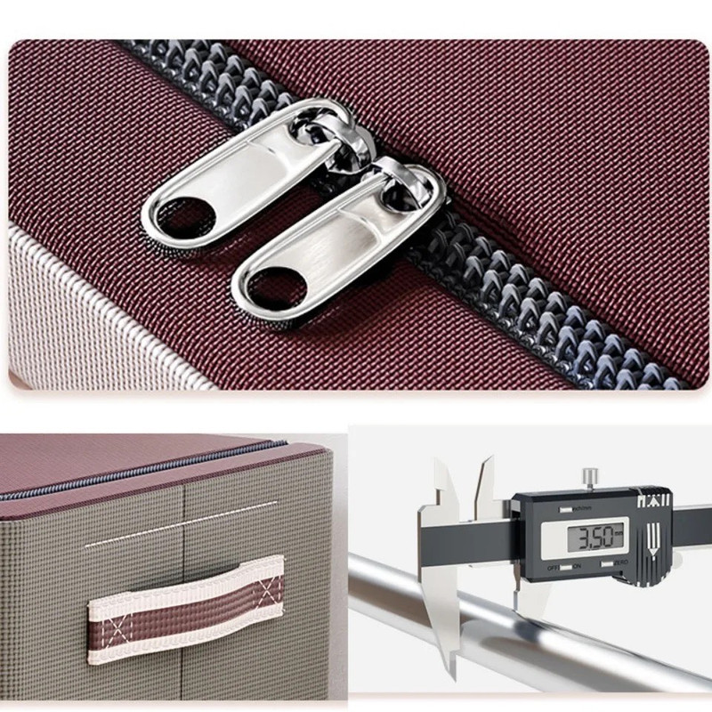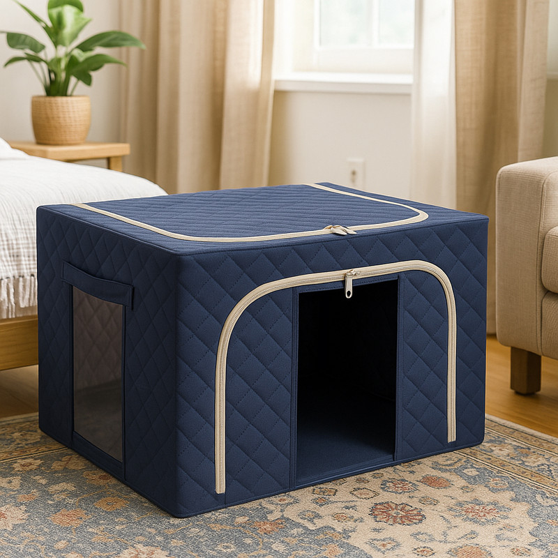 باکس نظم دهنده ارگانو ساخته شده از اسکلت فلزی تاشو 4 میل و کفی 3 میل MDF و پارچه 3 لایه فلامنت ترک در ابعاد50x40 و ارتفاع 30 سانتی متر می باشد ( بسته شامل 1 عدد باکس لباس و 1 عدد نظم دهنده 3 خانه است) در داخل باکس اسکلت فلزی با قابلیت تا شوندگی برای ایستایی آن تعبیه شده است همچنین این نظم دهنده داری یک کفی بسیار مستحکم توکار mdf می باشد که ایستایی آن را بیشتر میکند و مانع از دفرمه شدن آن حتی توسط اجسام سنگین میشود.