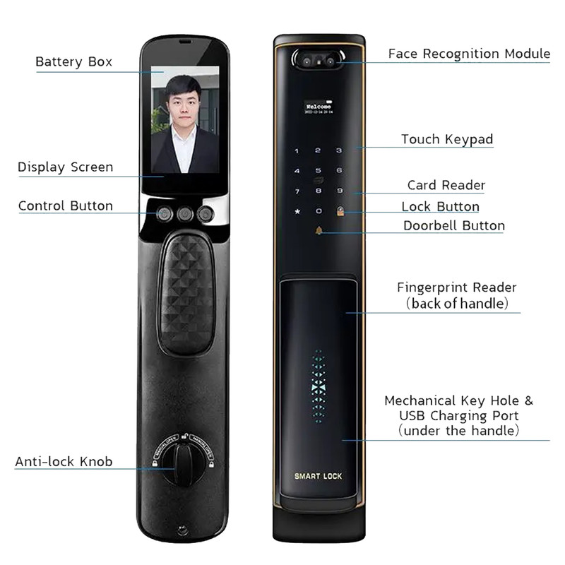 این قفل برای انواع درب چوبی، درب استیل، درب استیل ضد زنگ، درب آلومینیومی، درب برنجی استفاده می شود . گزینه های ذخیره سازی داده ها شامل ابر، کارت حافظه می باشد و از مواد آلیاژ آلومینیوم استفاده می شود . باتری لیتیومی 3200 ماهه از ویژگی های این محصول دوربین چشمی ، دمای کاری -10--55 درجه و کت و شلوار برای درب استاندارد 40-120 میلی متر (ضخامت) و گواهینامه CE FCC ROHS ISO9001 می باشد دارای تابع قفل سنسور خودکار بسته شدن درب است و ظرفیت 100 اثر انگشت / 100 کارت / 100 رمز عبور را دارد .