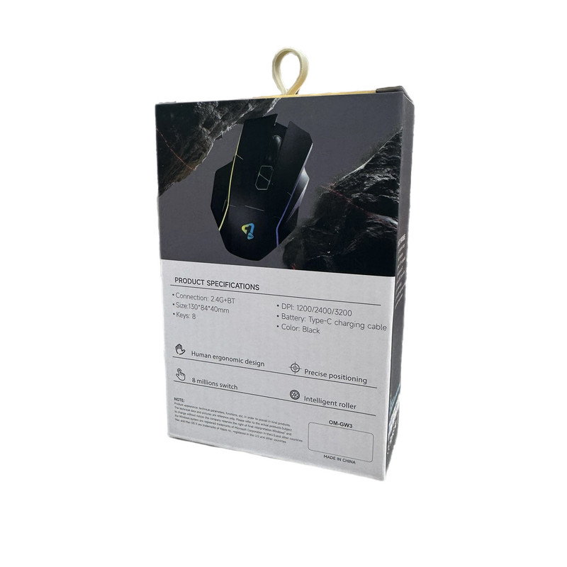ماوس بیسیم گیمینگ OM-GW3 تجربهای روان و دقیق را برای شما فراهم میکند.این ماوس با اتصال ۲.۴ گیگاهرتز و بلوتوث به دستگاههای شما متصل میشود و آزادی عمل بیشتری به شما میدهد.شما میتوانید میزان حساسیت را در سه سطح DPI 1200 / 2400 / 3200 تنظیم کنید و کنترل دقیقتری داشته باشید.این ماوس دارای ۸ کلید کاربردی است که تا ۸ میلیون بار کلیک دوام میآورند و عمر بالایی را تضمین میکنند.طراحی ارگونومیک آن باعث میشود ساعتها بدون خستگی از آن استفاده کنید.به کمک اسکرول هوشمند میتوانید حرکت روانتری را تجربه کنید.این محصول با یک باتری داخلی عرضه میشود که از طریق کابل Type-C به راحتی شارژ میشود.بدنهی مشکی و ابعاد 130×84×40 میلیمتر آن، ظاهری مدرن و مناسب هر محیطی را ایجاد میکند