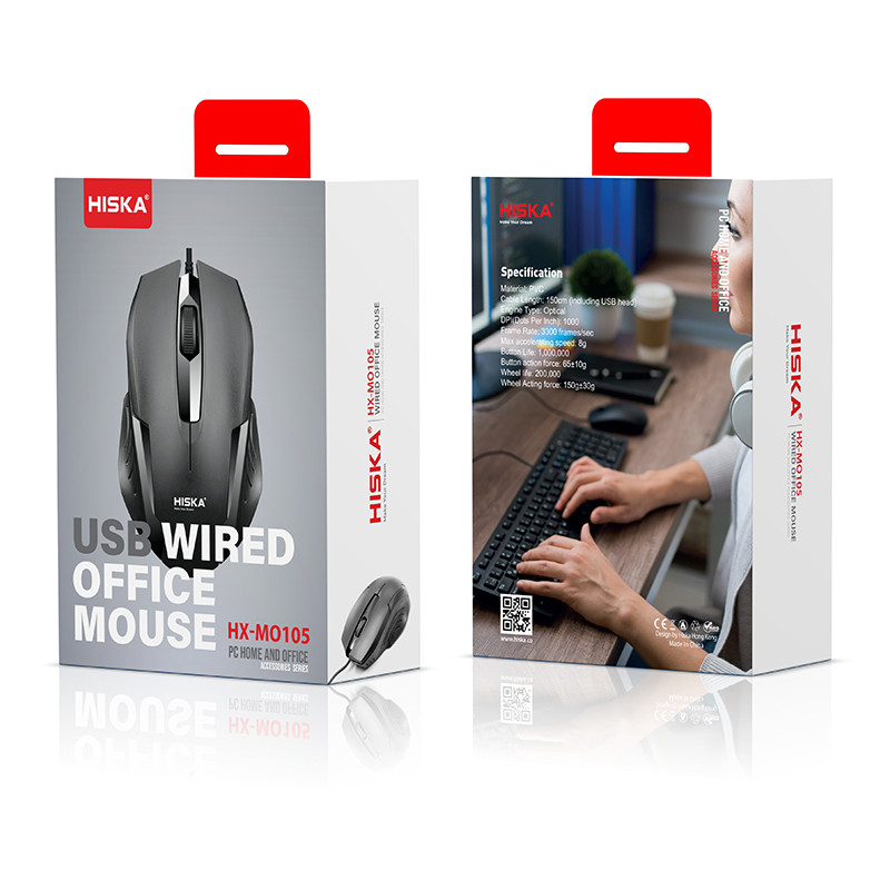 برخی از ماوسها علیرغم کارایی نهچندان پیشرفته و حرفهای، ظاهری خاص و شبیه به ماوسهای ردهبالای مخصوص بازی دارند و از این بابت میتوانند جذابیتهای خاص خود را داشته باشند و ظاهری متفاوت به میز کامپیوتر شما دهند. یکی از همین دست محصولات ماوس مدل HX-MO105 ساخت شرکت هیسکا است که اتصال از نوع باسیم با رابط USB و طول کابل 1.5 متری دارد. این ماوس از نوع اپتیکال با دقت متوسط 1000dpi است. همچنین فریم ریت 3300 فریم در ثانیه دارد.