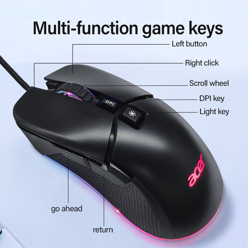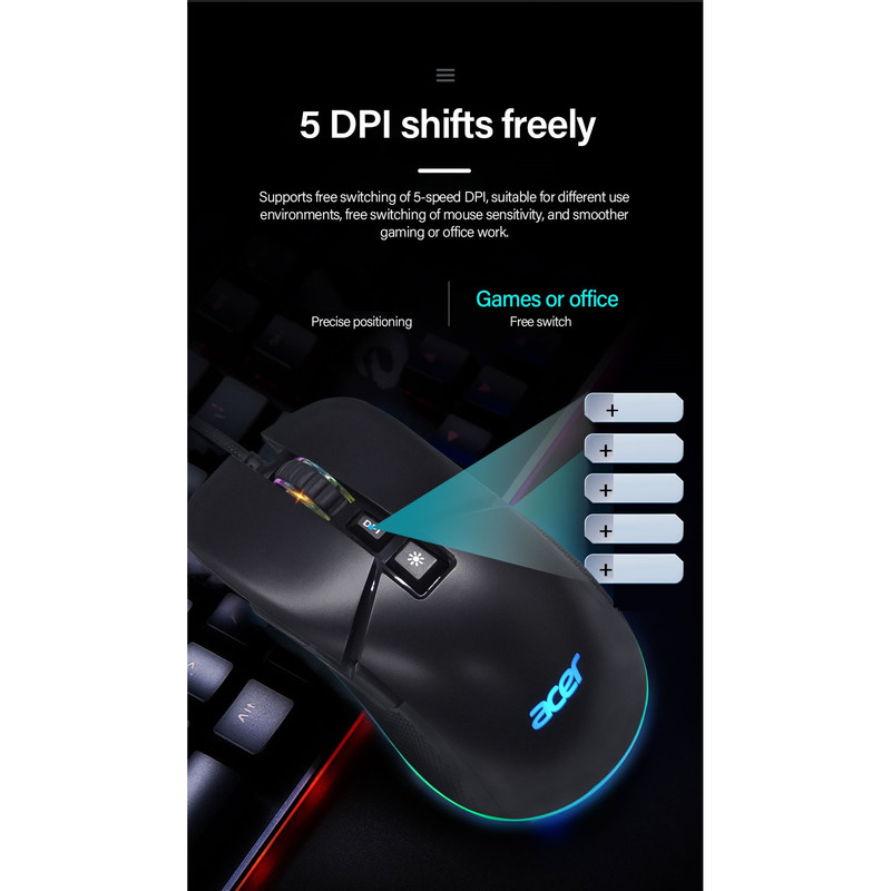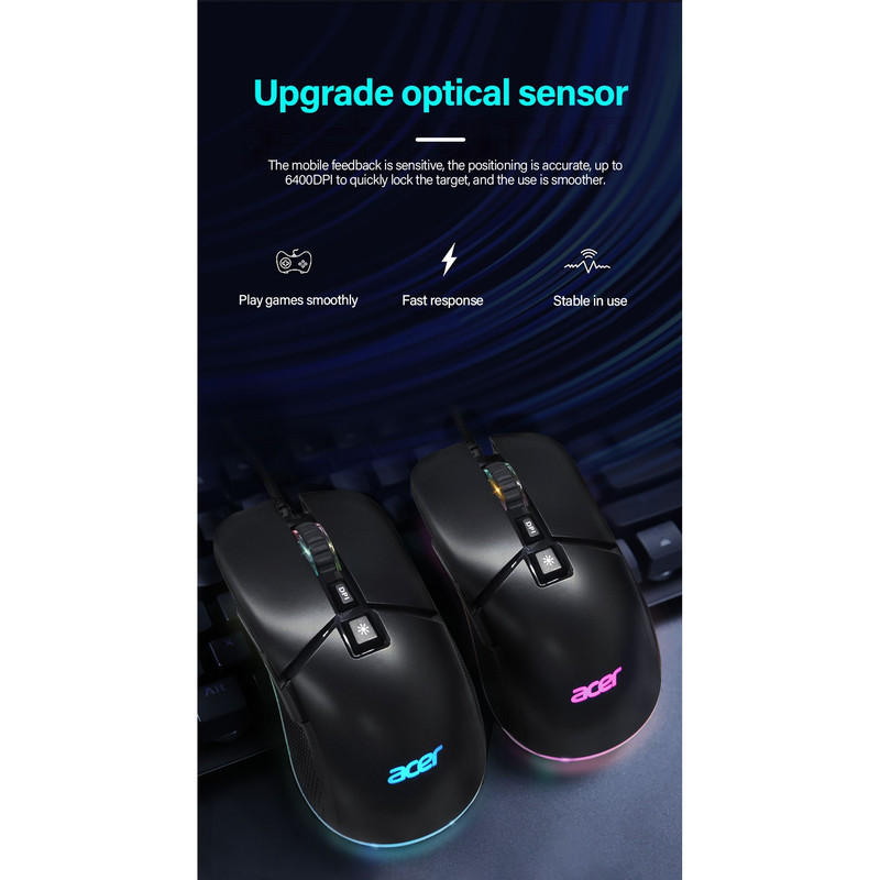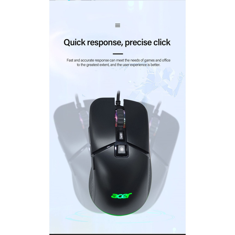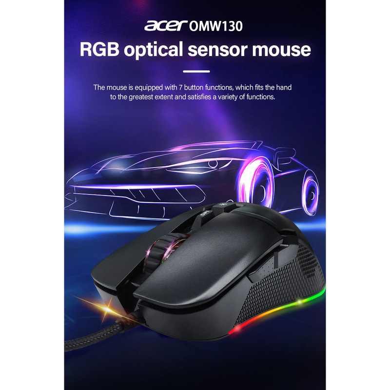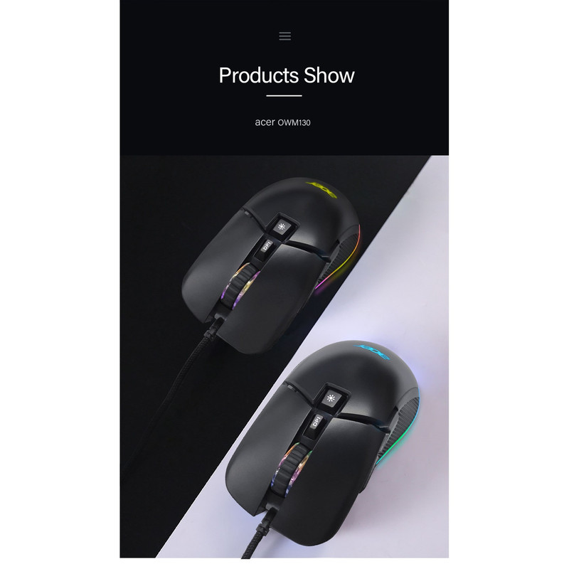 برند ایسر برندی شناخته شده است که نیاز به تعریف خاصی ندارد.ماوس 0MW13O یک ماوس بازی حرفه ای از این کمپانی میباشد.ارگونومی این ماوس بسیار خاص و حرفه ای است که استفاده از آن را برای بازی بهینه میکند.دقت این ماوس عدد استثنایی 7200 DPI است،خصوصیت دیگر این ماوس کلید مخصوص تغییر افکت RGB است که به طور معمول در سایر ماوسها دیده نمیشود.