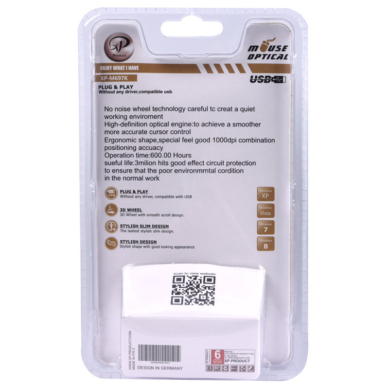 ماوس سیم دار XP-Product مدل M697K با کیفیت و قیمت مناسب روانه بازار شده است. ماوس M697K از نوع سیم دار بوده و طول کابل این ماوس 1 متر و محدوده دقت آن محدوده دقت (DPI) 800 تا 1600 است که مقدار خوبی به حساب می آید.