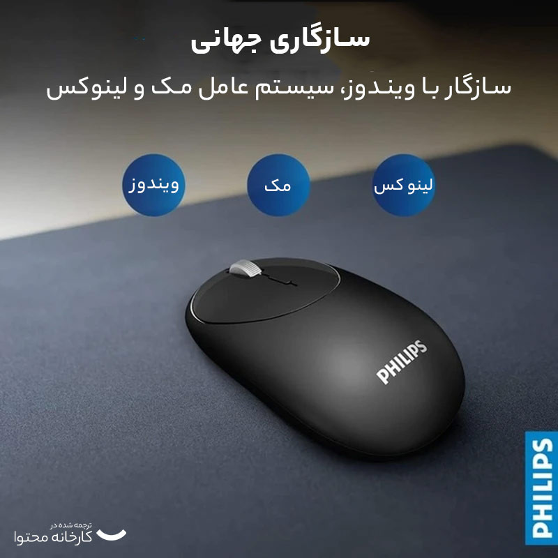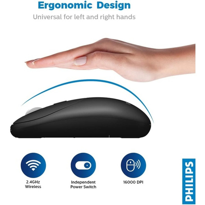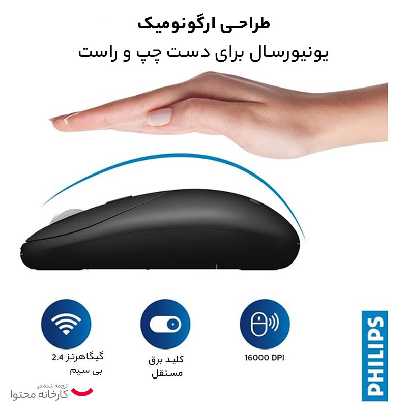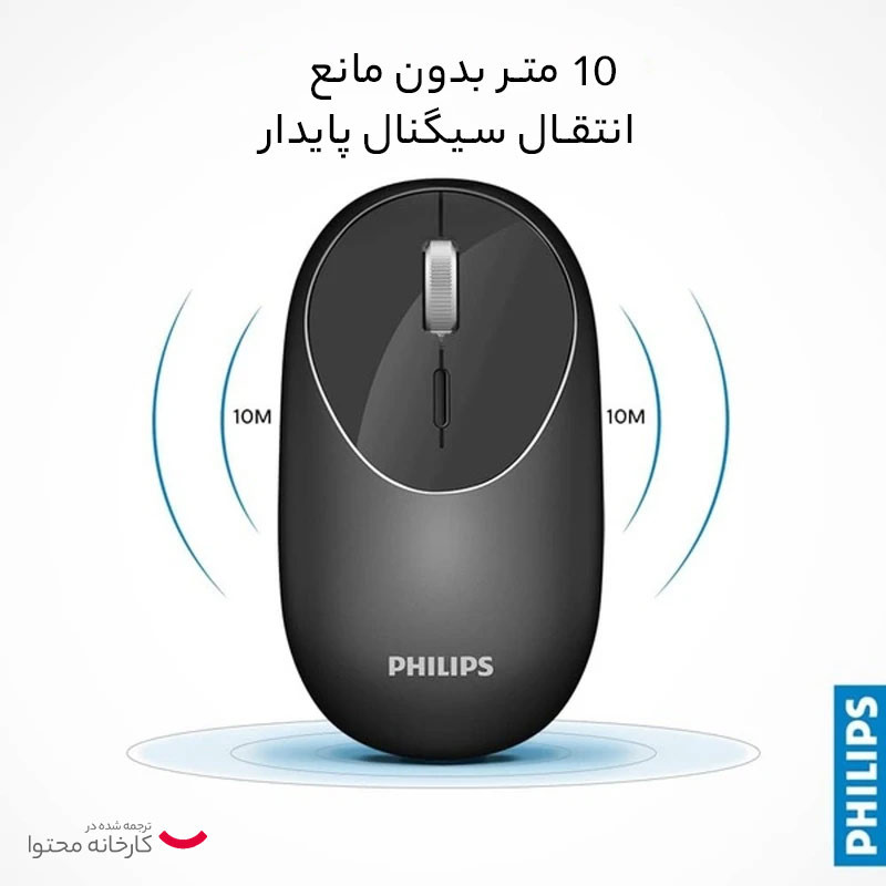 ماوس بیسیم فیلیپس با مهندسی دقیق با فناوری بیسیم 2.4 گیگاهرتز، مسافت کاری 10 متری بدون مانع را فراهم کرده است.