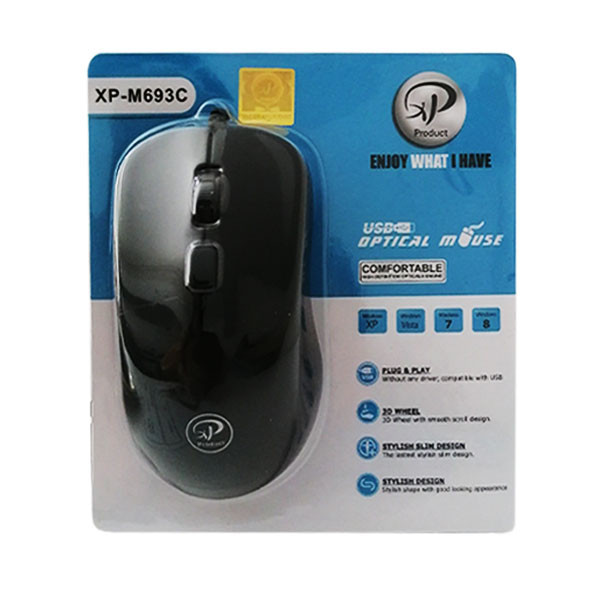 ماوس ایکس پی پروداکت مدل XP-M693C دارای حسگر اپتیکال با دقت 1000dpi می باشد. نوع اتصال این ماوس سیمی بوده و از طریق کابل USB به لپ تاپ یا کامپیوتر شما متصل می گردد.