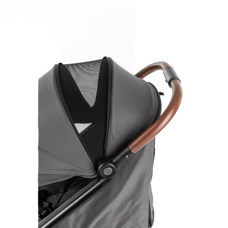 بدنه آلومینیومی مقاوم در کنار دستههایی با روکش چرم، کیفیتی لوکس و ماندگار به کالسکه بخشیده. نشیمنگاه آن قابلیت تنظیم در سه حالت نشسته، لمیده و خوابیده را دارد تا کودک شما در هر موقعیتی راحت باشد.
