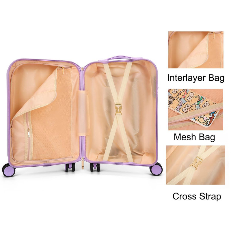 چمدان کودک وارداتی طرح سه بعدی که با تکان دادن آن دو تصویر مختلف به نمایش در می آید یک محصول بسیار کاربردی برای کودکان است که در سفرهای هوایی قابل حمل داخل هواپیما میباشد و همچنین یکی از بهترین گزینه ها جهت هدیه دادن است. این محصول دارای دسته فلزی تراولی دو مرحله ای است و همچنین قفل بدنه ای TSA جهت قفل شدن زیپ ها به بدنه را نیز دارد. دارای چهار چرخ دوبل و بی صدا است که جابه جایی آن را توسط کودکان بسیار راحت میکند. ابعاد بیرونی چمدان همراه با ارتفاع چرخ ها 55x23x34 سانتی متر است و جنس بدنه انعطاف پذیر است