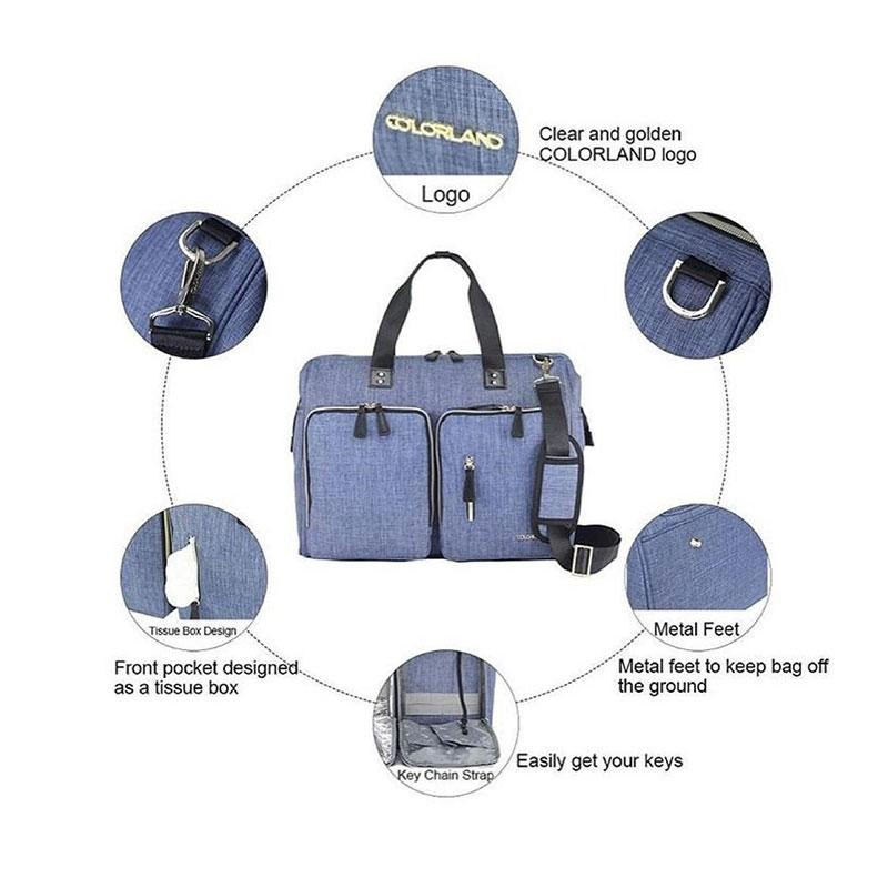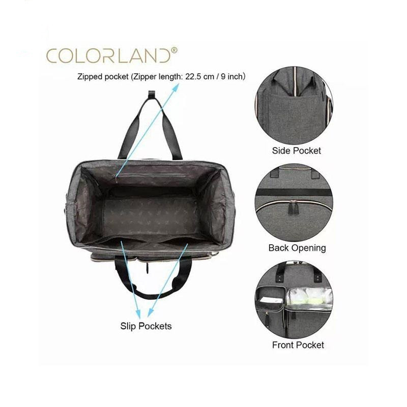 ساک لوازم بزرگ کالرلند است قابلیت اتصال به چمدان است بسیار بزرک و جادار است موجود در دو رنگ است – دارای زیر انداز تعویض است – دارای جیب در قسمت های کناری است – دارای قسمت نگه دارنده دستمال مرطوب است – دارای قسمت نگه دارنده شیشه شیر و محافظ گرم نگه دارنده است