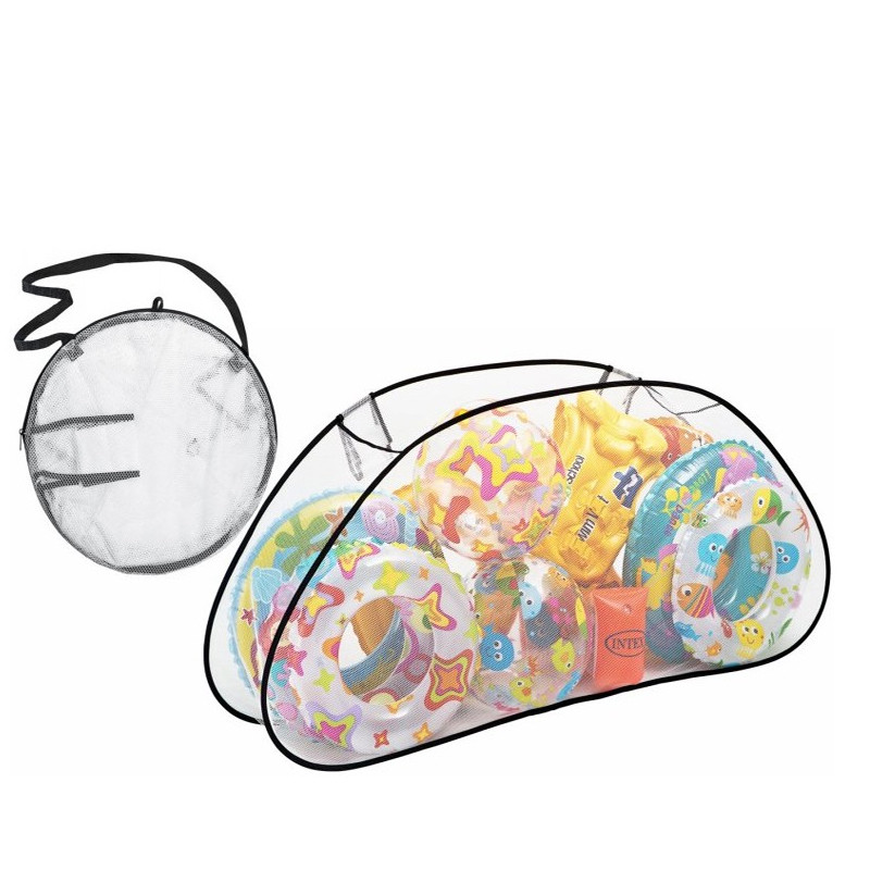 سایر توضیحات : کیف توری نگهداری لوازم شنا بادی و تفریحات آبی محصولی از شرکت اینتکس بوده که معمولا جهت نظم دادن به محصولات بادی همچون توپ بادی، حلقه بادی، بازوبند بادی، جلیقه بادی و غیره عرضه شده است.