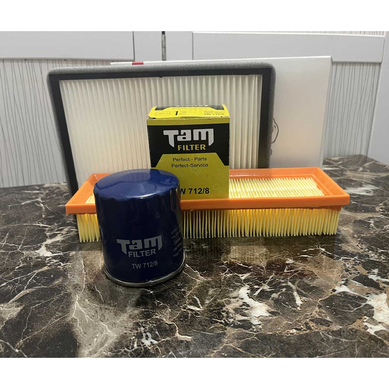 فیلتر روغن خودرو تام مدل TW 712/8 مناسب برای سمند / پژو پارس به همراه فیلتر هوا و کابین