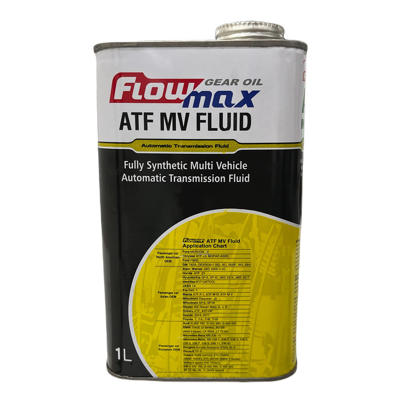 روغن گیربکس و دنده اتوماتیک فلومکس مدل ATF MV FLUID فول سینتتیک سیال ( روغن گیربكس ) انتقال اتوماتیكی است كه با روغن های پایه كاملا سنتتیک و با استفاده از افزودنی های ویژه به صورتی فرموله شده است كه خواص اصطلاک و قابلیت ضد ارتعاشی لازم در سرعتهای كم مطابق الزامات عملكردی در استاندارد های جهانی و سازندگان مطرح گیربكسهای اتوماتیك در سطح جهان را تامین نماید. این روغن برای استفاده در اکثر گیربکس های اتوماتیک ژاپنی، کره ای، اروپایی و آمریکایی بغیر از گیربكسهای تایپ CVT و DCT مناسب است.