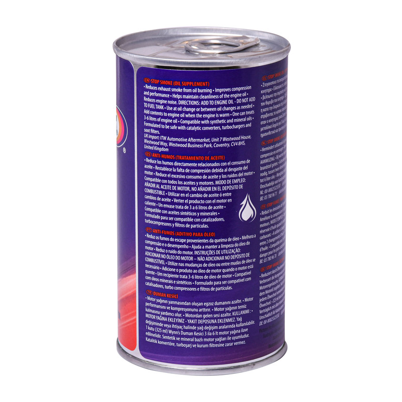 "Wynn's Stop Smoke" طراحی شده است تا به تعمیر و نگهداری حلقهها و سیلندرهای سوخت درون موتور کمک کند. این محصول میتواند به رسوبات سوخت و روغن در دستگاه سوخت و احتراق کمک کند و در نتیجه کاهش دود خروجی را فراهم آورد.