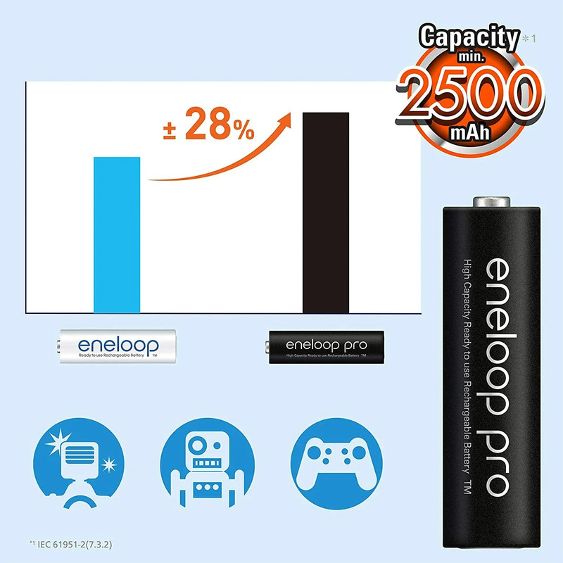 باتری قابل شارژ پاناسونیک مدل«Eneloop» ، با داشتن 2550 میلیآمپرساعت ظرفیت، برای استفاده در دستگاههای الکترونیکی پرمصرف مانند فلاش دوربینهای عکاسی مناسب است. تکنولوژی ساخت آن «Ni-MH» است و تا 500 مرتبه قابلیت شارژ دارد. بسته به برند شرکت سازنده، باتریهای قابل شارژ نسبت به باتریهای معمولی حدود 5 تا 10 برابر قیمت بیشتری دارند. ازآنجاییکه این باتریها میتوانند بارها و بارها شارژ و استفاده شوند، کمک بزرگی به حفظ محیط زیست میکنند. پاناسونیک پس از سالها تحقیق و بررسی، نسلی جدید از باتریهای قابل شارژ را تولید کرده است که ویژگیهای برجستهای دارند. باتریهای این شرکت در سه سری «Eneloop Standard» بارنگ سفید،«Eneloop Lite» با رنگ آبی و«Eneloop Pro» با رنگ مشکی تولید میشوند. این باتریها پنج ویژگی مشترک دارند: قدرت بالا؛ تخلیه شارژ پایین؛ دوام زیاد در دماهای بالا و پایین؛ از پیش شارژشده توسط انرژی خورشیدی و قابلیت شارژشدن بیش از 2100 مرتبه. باتریهای سری «Eneloop Pro»، همانطور که از اسمشان برمیآید، برای مصارف حرفهای ساخته شدهاند. این محصول دارای دو باتری قلمی قابل شارژ است. این باتریها به رنگ مشکی هستند و ظرفیت و قدرت زیادی دارند. تکنولوژی ساخت آنها «Ni-MH» است. 2550 میلیآمپرساعت ظرفیت دارند و اختلافپتانسیلشان 1.2 ولت است. باتریهای این سری میتوانند تا 500 مرتبه شارژ شوند و حداکثر تا یک سال، 85 درصد انرژی خود را حفظ کنند. ویژگی مهم این باتریها، نرخ ثابت تخلیه شارژشان است. یعنی برخلاف سایر باتریها که با کمشدن شارژ، قدرتشان کم میشود، باتریهای «Eneloop» تا اتمام شارژشان ولتاژی ثابت و پایدار دارند. اگر قصد خرید باتری قابل شارژ باکیفیتی دارید، باتریهای «Eneloop Pro» پاناسونیک، با ظرفیت و قدرت زیادی که دارند انتخاب خوبی هستند.