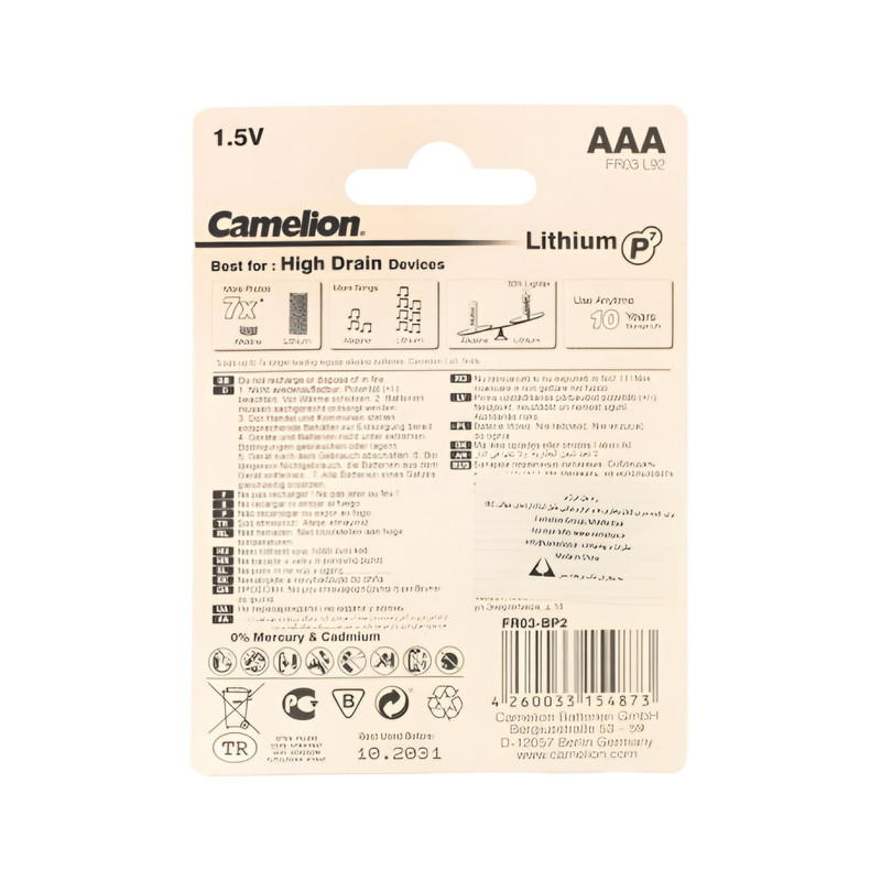 تکنولوژی باتری لیتیوم مارک باتری CAMELION ولتاژ باتری 3 ولت سایز باتری سکه ای مدل CR1632 حداکثر قطر خارجی 16میلی متر حداکثر ارتفاع 3.2 میلی متر قابل شارژ قابل شارژ نیست بسته بندی کارتی تاریخ بهترین استفاده قبل از 2034-10 ساخت کشور چین