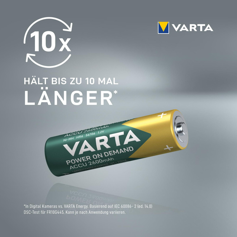 باتری قلمی شارژی وارتا مدل 2600 میلی آمپر با ولتاژ 1.2 ولت که در بسته بندی دو عددی ارائه می شود، از دیگر باتری های شارژی و مقرون به صرفه وارتا ساخت کشور آلمان به شمار می رود. استفاده از این باتری شارژی قلمی با توجه به ظرفیت 2600mAh در لوازم دیجیتال مانند دوربین، دسته بازی، باتری اسباب بازی، ساعت های دیواری بهترین سطح انرژی و مدت زمان کارکرد را دارا می باشد.