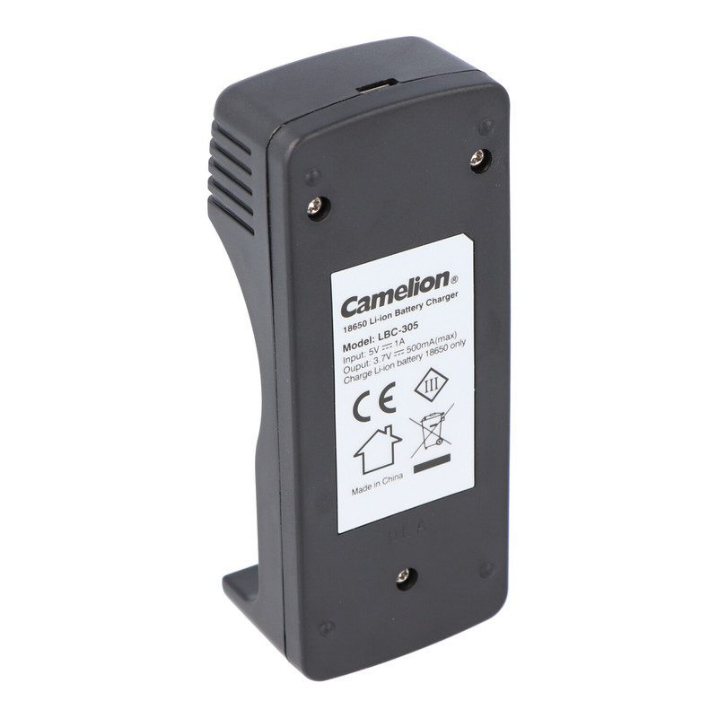 شارژر باتری کملیون Camelion LBC 305 یکی از این لوازم جانبی است که وسیلهای مناسب برای شارژ باتریهای 18650 (Li-18650) است. این دستگاه دوکانال مجزا برای شارژ دارد و توان شارژ بصورت flat-top و high-top را دارد . در این شارژر از تکنولوژیهای حفاظتی جهت جلوگیری از overcharge و حفاظت در مقابل reverse polarity و اتصال کوتاه استفاده شده است. جهت استفاده ازین شارژر باید آنرا بوسیله کابل USB به آداپتور USB متصل کنید.
