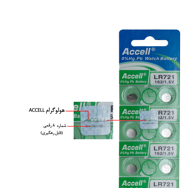 یکی از مهمترین دلیل خرید باتری ساعت اکسل مدل LR721 کیفیت، توان واقعی، ماندگاری و عملکرد باتری اصلی می باشد. از همین رو شرکت اکسل برای تشخیص محصول اصل از غیر اصل، اقدام به نصب هولوگرام با شماره سریال 8 رقمی قابل رهگیری بر روی بسته بندی باتری نموده است که در زمان خرید برای اطمینان از اصل بودن باتری به هولوگرام که تصویر آن در سایت موجود است توجه فرمایید. کمپانی اکسل باتری هایی متنوعی با کیفیت بسیار بالا تولید می نماید که از جمله آنها باتری های سکه ای و ساعتی می باشند. این باتری اکسل 1.5 ولت واقعی و مناسب برای ساعت های مچی عقربه ای و دیجیتال می باشد. نکته مهم قبل از خرید باتری، چک کردن عدد نوشته شده پشت ساعت می باشد تا مطابق همان عدد باتری مخصوص خود ساعت را تهیه نمایید.