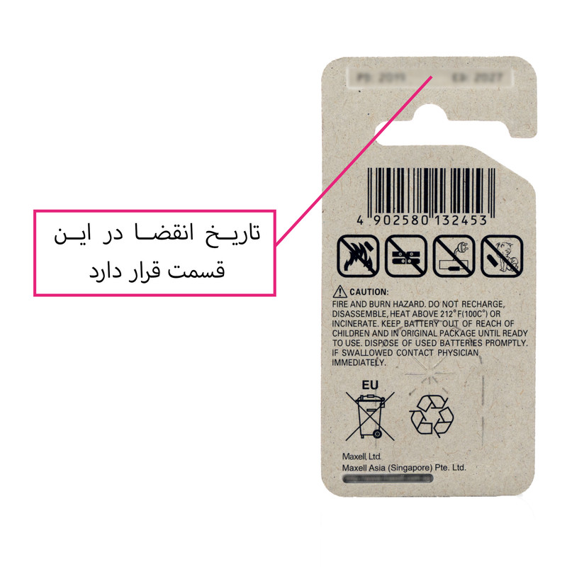 یکی از ویژگیهای باطری های سکه ای اصلی بودن آنها می باشد چون علاوه بر داشتن ولتاژ واقعی دارای مدت زمان کارکرد بسیار بیشتری نسبت به مدل های غیر اصل می باشند . این باتری مکسل نیز از محصولات اصلی مکسل می باشد . بهترین راه برای تشخیص این موضوع علاوه بر یکسان بودن بسته بندی می بایست تاریخ انقضا بر روی کارتن محصول و در قسمتی که در عکس مشخص شده دقت نمایید.این محصول ساخت کشور ژاپن می باشد.