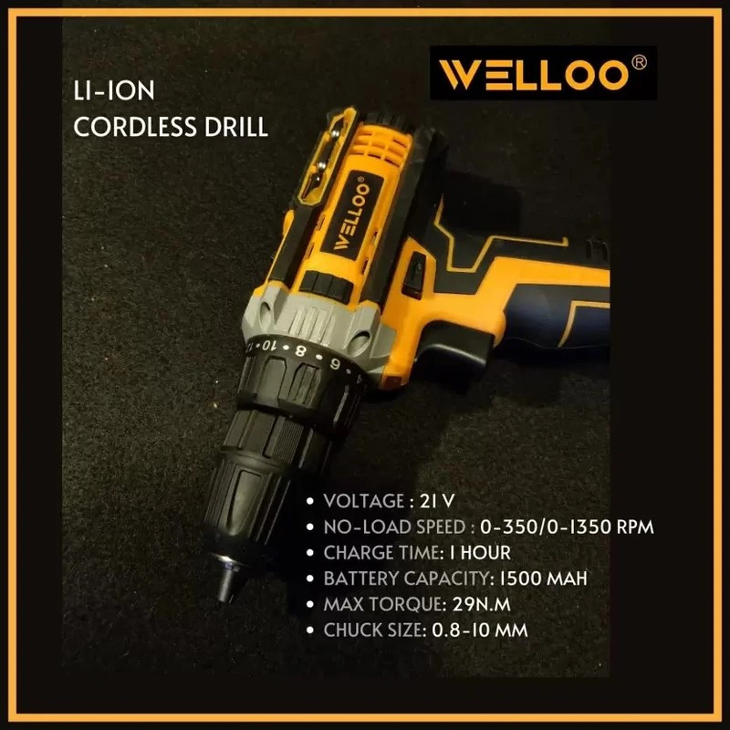 دریل شارژی چکشی ولو(WELLOO) مدل CLD50221 یک دریل 21 ولتی با باتری 1500 میلی آمپری لتیومی است. سوئیچ رو به جلو و معکوس این دریل به شما اجازه می دهد تا جهت مته را تغییر دهید که به شما در بستن پیچ ها یا دریل کردن کمک می کند. دریل شارژی ولو CLD50221 دارای کلاچ 20 حالته است و به شما در خالی نکردن پیچ ها و تنظیم گشتاور کمک می کند. دریل شارژی WELLOO دارای تنظیمات کلاچ متفاوتی است که به شما کمک می کند پیچ ها را براساس نیاز تا عمق مورد نظر هدایت کنید. برای رفع نیازهای خود برای باز و بسته کردن پیچ به یکی از آن ها سوئیچ کنید. همچنین یک LED را برای عملکرد مناسب در مناطق تاریک که روی آن کار می کنید، تعبیه شده است. نگران کنترل ابزار نباشید زیرا این دریل حجیم نیست و دارای یک دسته نرم است که برای گرفتن، مهار و کنترل بیشتر است. این دریل برای چوب و فولاد و دیگر سطوح سخت کاربرد دارد. با یک مته ۱۵ میلی متری برای چوب و ۱۰ میلی متری برای فولاد، کار را برای هر محل کار بهینه می کند. کار با دریل ممکن است طاقت فرسا به نظر برسد اما دریل شارژی ولو(WELLOO) شما را خسته نمی کند و محرک سرعت متغیر آن به تنظیم سرعت براساس نیاز کمک می کند. با دو حالت قدرتی و سرعتی ۰ - ۳۵۰ / ۰ - ۱۳۵۰ دور در دقیقه این دریل دوگانه عمل می کند که عملیات دقیقی را برای پروژه های سنگین و سبک فراهم می کند. از مهم ترین ویژگی های این دریل شارژی سرعت و گشتاور آن است که موتور دریل شارژی چکشی ولو(WELLOO) مدل CLD50221 می تواند ۲۹ نیوتن متر گشتاور تولید کند که سرعت چرخش قدرتمند پیچ ها و مته ها را تضمین می کند.